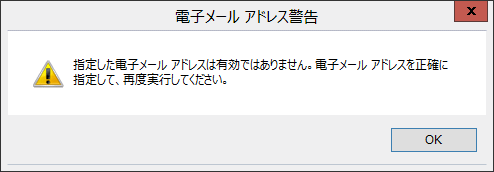ここで、 「指定した電子メールアドレスは有効ではありません。電子メールアドレスを正確に指定して、再度実行してください。」 と表示された場合は、