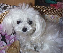小さくてかわいい マルチーズです。あまり吠えない静かな犬ですが・・・・・・・チャイムの音だけにはかわいい声で吠えます。